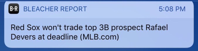 I understand Devers could still be dealt at some point, possibly for someone even less appealing, because Davey won’t rest until that farm system is full of dudes destined to finish their 20s selling used cars and life insurance but for this moment, I can relax. (Also, it should be noted that I have actually been in favor of the majority of his deals so far but his ‘anyone is available’ strategy is starting to worry me as their minor league rosters become less and less recognizable, thats all.)